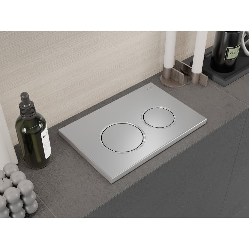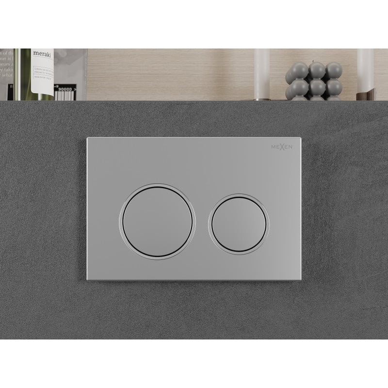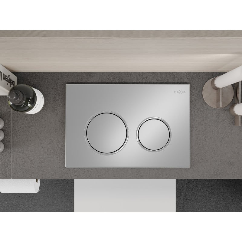 Špecifikácia produktu: Vhodné pre pneumatický rám: Mexen Fenix Air XS-F - 6A800, Fenix Air XS-U - 6A850 Farba: Matný chróm Materiál: Plast Mechanizmus: Pneumatický 2 splachovacie okruhy Predné ovládanie stlačením