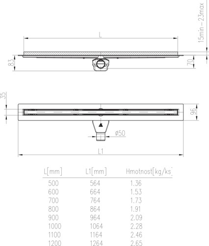 Nenápadná štíhla línia ponúka bezpečné a elegantné riešenie pri sprchovaní. Vzhľad kúpeľne tak dostáva úplne nový rozmer moderného designu. Telo žľabu je opatrené otočným protizápachovým sifónom D 50. Rámček a mriežka sú vyrobené z vysoko kvalitnej nerezovej ocele AISI 304. Slim line je bezkonkurenčný produkt s tenkým a elegantným telom ponúkaný v rozmeroch 500, až 1200 mm. Určené na vnútorné použitie Prietok: 45 l/min