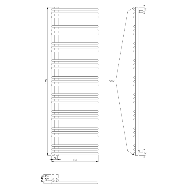 POSEIDON vykurovacie teleso 550x1740mm, čierna mat