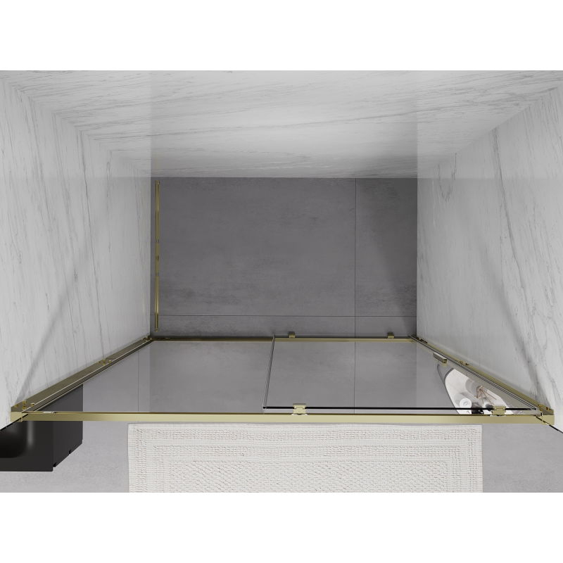Špecifikácia produktu: Rozmer: 140x200 cm Montáž: Univerzálny Vchod: Posuvný Farba skla: Priehľadná Typ skla: Tvrdené Hrúbka skla: 6 mm Profil: Hliník Povrchová úprava: Zlatý náter pre ľahké čistenie Vyrovnanie nerovností steny Nastavenie šírky Možnosť montáže na sprchovú vaničku Hliníkový prah na tesnenie dverí