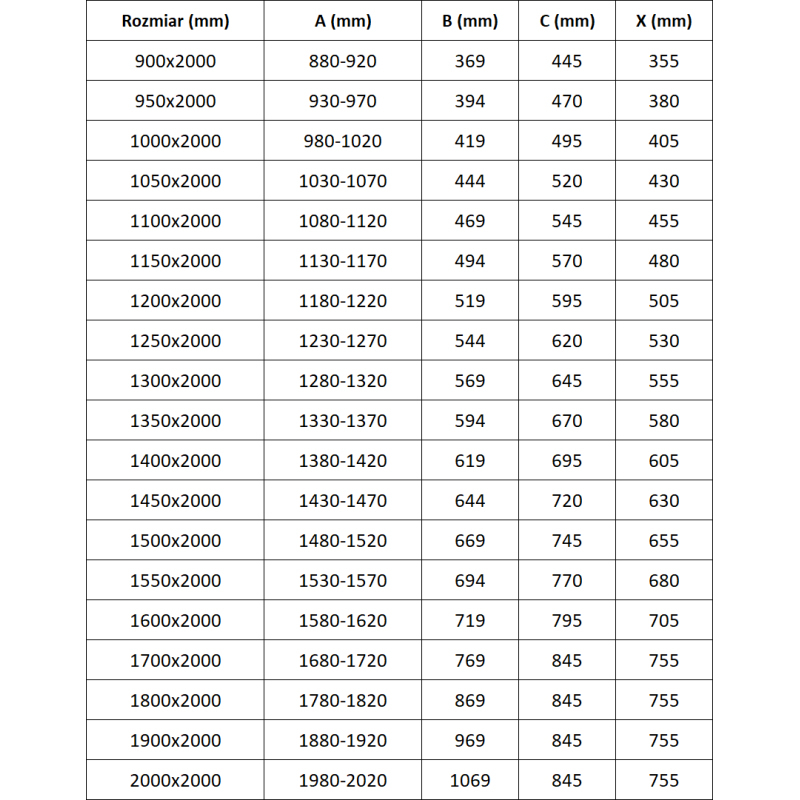 Špecifikácia produktu: Rozmer: 90x200 cm Montáž: Univerzálny Vchod: Posuvný Farba skla: Priehľadná Typ skla: Tvrdené Hrúbka skla: 6 mm Profil: Hliník Povrchová úprava: Čierna Povlak pre ľahké čistenie Vyrovnanie nerovností steny Nastavenie šírky K montáži na sprchovú vaničku alebo obklady prah na tesnenie dverí
