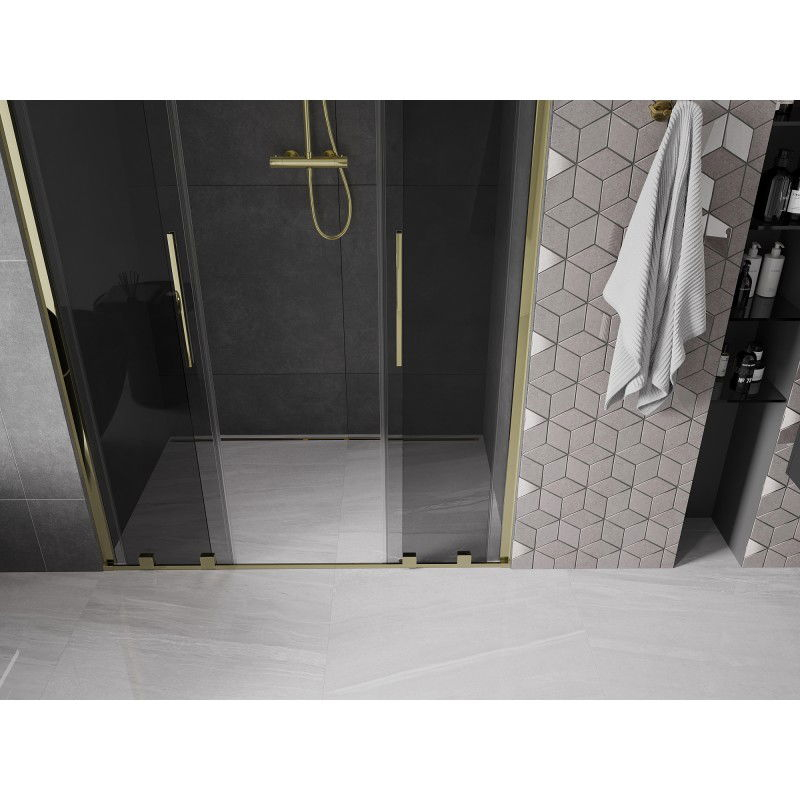 Posuvné sprchové dvere Mexen Velar Duo 150 cm, grafit, zlato - 871-150-000-42-50