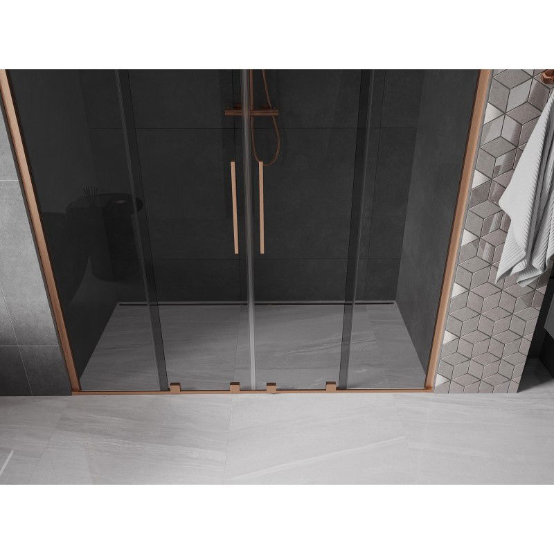 Posuvné sprchové dvere Mexen Velar Duo 200 cm, grafit, kartáčovaná meď - 871-200-000-42-65