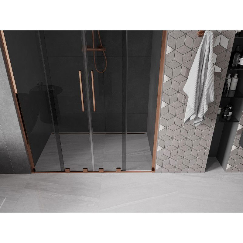 Posuvné sprchové dvere Mexen Velar L Duo 140 cm, grafit, ružové zlato - 871-140-003-42-60
