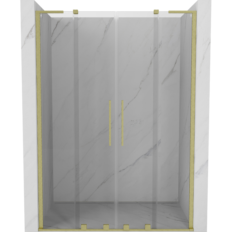 Posuvné sprchové dvere Mexen Velar L Duo 140 cm, priehľadné, kartáčované zlato - 871-140-003-02-55