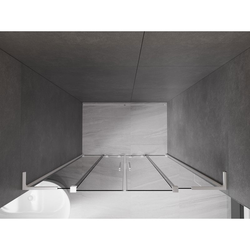 Špecifikácia produktu: Rozmer: 150x200 cm Montáž: Univerzálny Vchod: Posuvný Farba skla: Grafit Typ skla: Tvrdené Hrúbka skla: 8 mm Profil: Hliník Povrchová úprava: Biela Stabilizátor uhla L: Nerezová oceľ Povrch pre jednoduché čistenie Vyrovnanie nerovností steny Súprava tesnení na odvod vody Hliníkový prah na tesnenie dverí