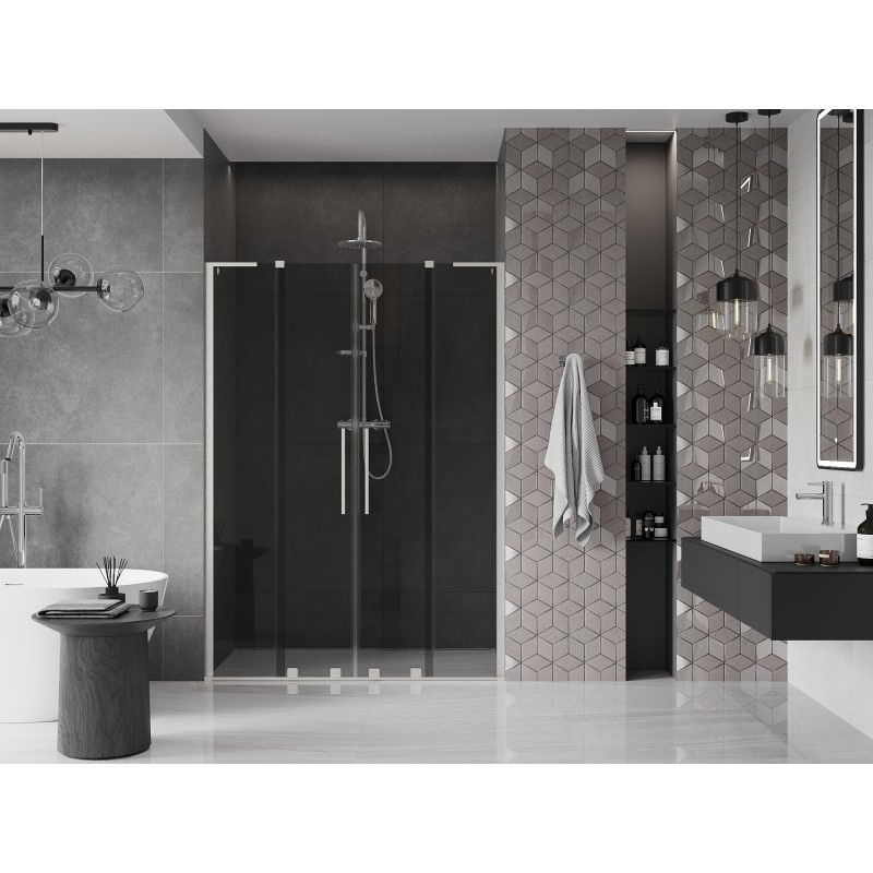 Posuvné sprchové dvere Mexen Velar L Duo 160 cm, grafit, kartáčovaný nikel - 871-160-003-42-97