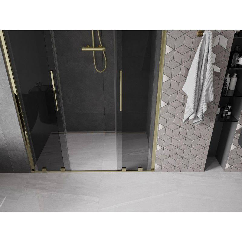 Posuvné sprchové dvere Mexen Velar L Duo 160 cm, grafit, zlato - 871-160-003-42-50
