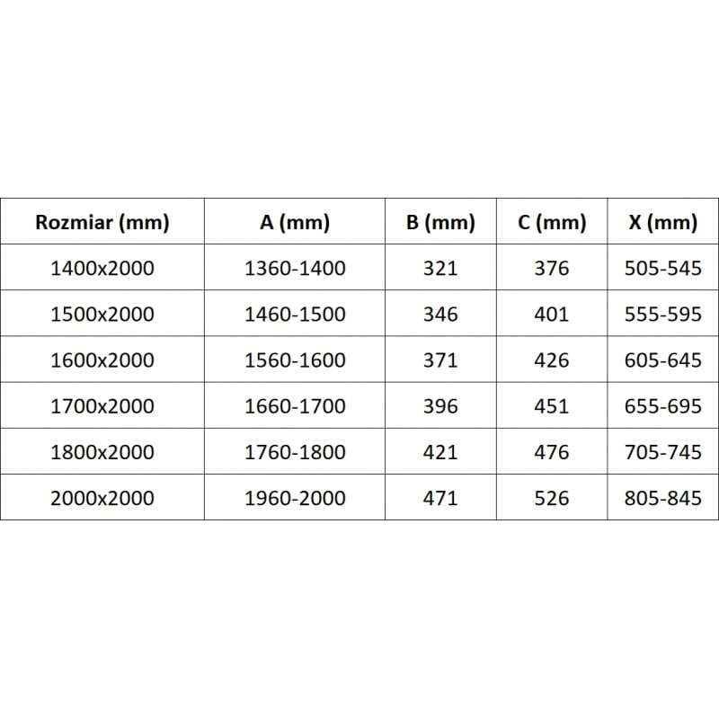 Špecifikácia produktu: Rozmer: 180x200 cm Montáž: Univerzálny Vchod: Posuvný Farba skla: Mliečna Typ skla: Tvrdené Hrúbka skla: 8 mm Profil: Hliník Povrchová úprava: Kartáčovaná meď Stabilizátor uhla L: Nerezová oceľ Povrch pre jednoduché čistenie Vyrovnanie nerovností Nerezová kľučka Sada tesnení na odvod vody Hliníkový prah na tesnenie dverí