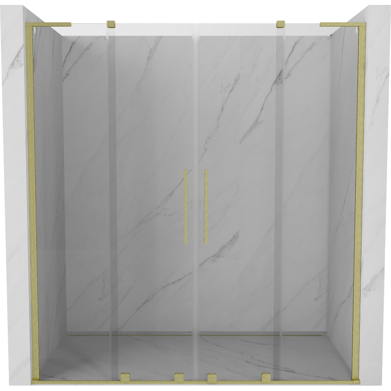 Posuvné sprchové dvere Mexen Velar L Duo 200 cm, priehľadné, kartáčované zlato - 871-200-003-02-55