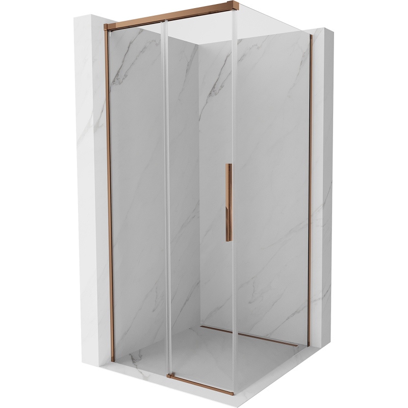 Špecifikácia produktu: Rozmer: 95x95 cm (dvere 95 cm, stena 95 cm) Výška: 200 cm Strana montáže: Univerzálny Vchod: Posuvné dvere Farba skla: Priehľadná Povrchová úprava: Ružové zlato Profil: Hliník Typ skla: Tvrdené Hrúbka inštalácie sprchovaciu vaničku alebo obklady Neviditeľný mechanizmus posuvných a dverných prvkov Vodítka s funkciou tlmenia zatvárania Posuvník zaisťujúci tichý chod dverí Možnosť vyklopenia dverí na čistenie kabíny Elastomérové tesnenia na odvod vody Hliníkový prah tesnenia dverí