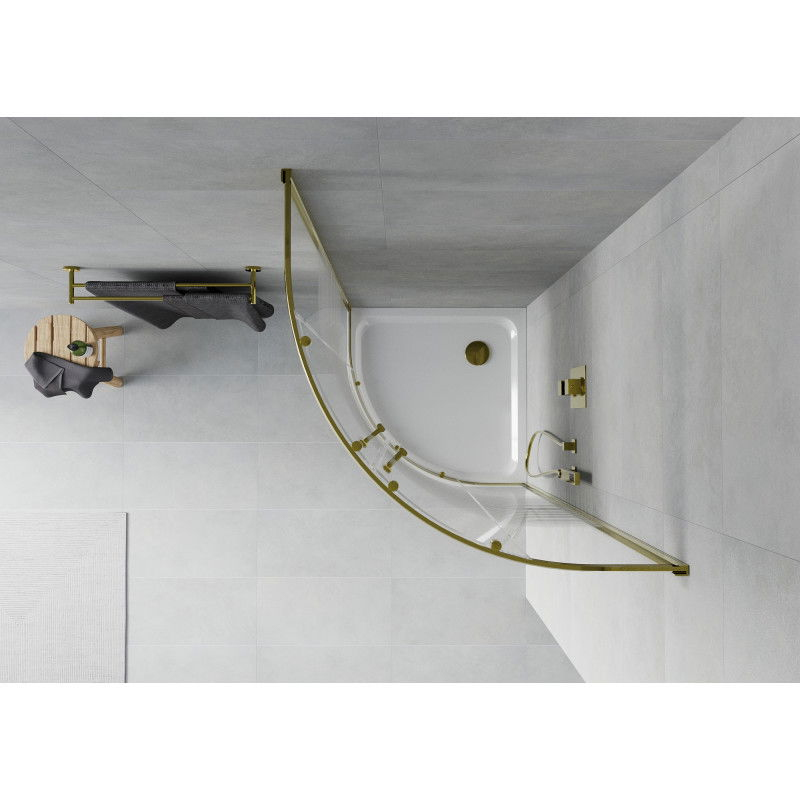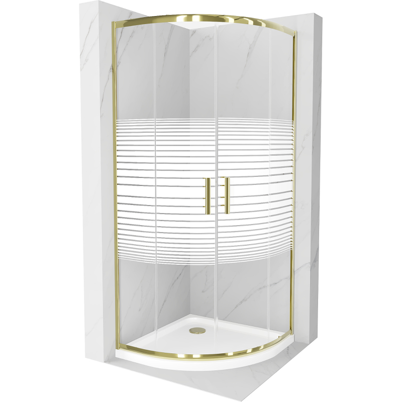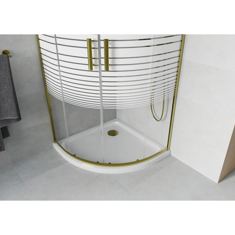 Půlkruhový sprchový kout Mexen Rio 80 x 80 cm, bílé pruhy, zlatá + Plochá sprchová vanička, bílá - 863-080-080-50-20-4110G