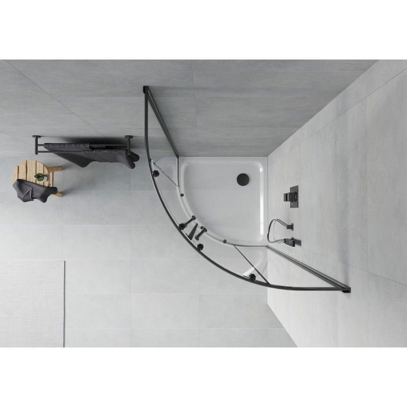 Půlkruhový sprchový kout Mexen Rio 80 x 80 cm, průhledný, černý + Plochá sprchová vanička, bílá - 863-080-080-70-00-4110B