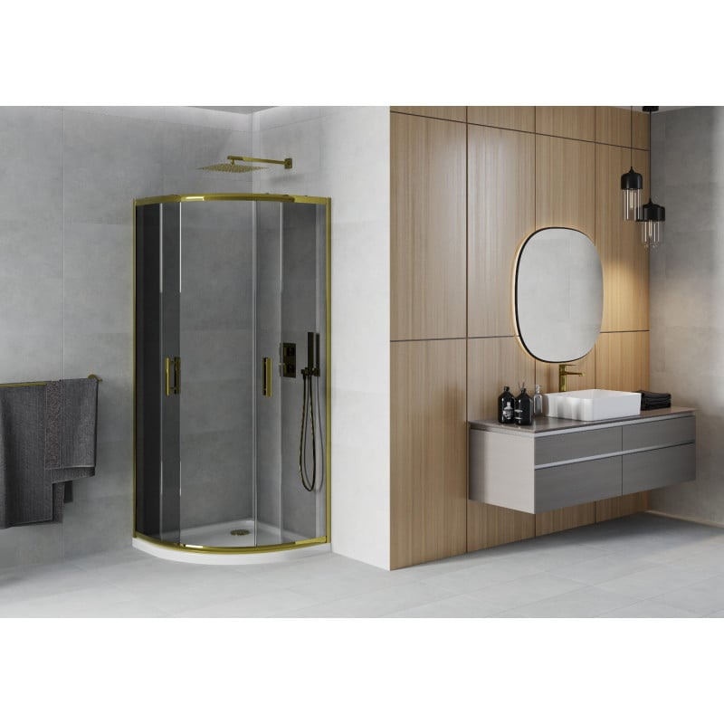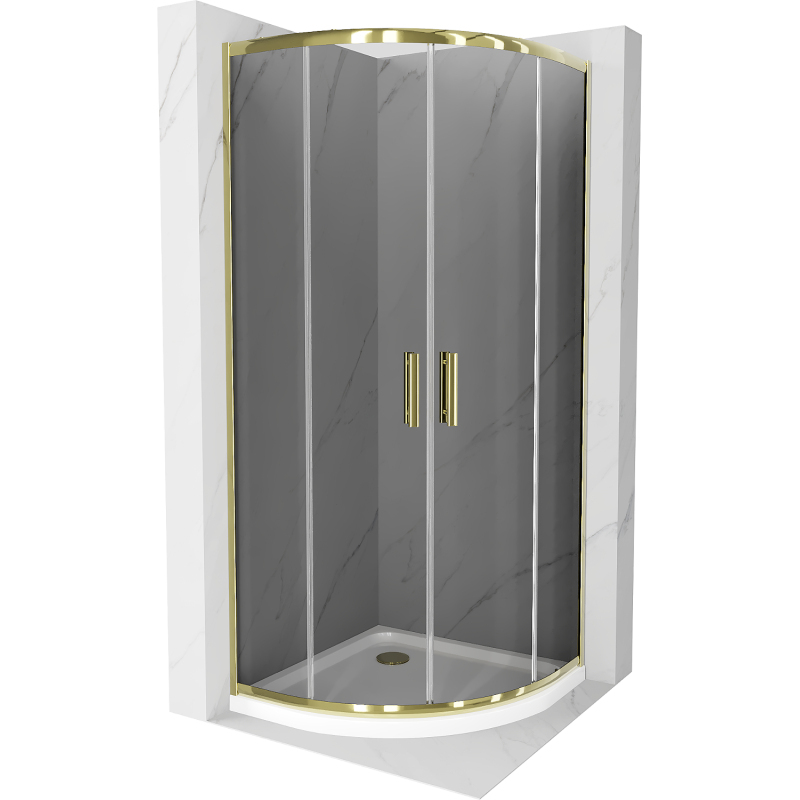 Půlkruhový sprchový kout Mexen Rio 90 x 90 cm, grafit, zlatá + plochá sprchová vanička, bílá - 863-090-090-50-40-4110G