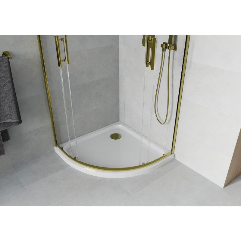 Půlkruhový sprchový kout Mexen Rio 90 x 90 cm, průhledný, zlatý + plochá sprchová vanička, bílá - 863-090-090-50-00-4110G
