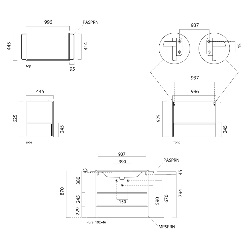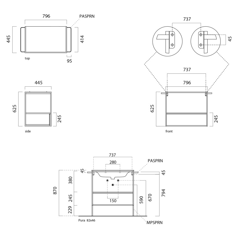 PURA nábytková nožička, výška 229mm, pre konštrukciu MSAP82N/102N, čierna