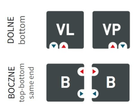 Príplatok za spodné pravé/ľavé pripojenie 20% k cene za bočné pripojenie.