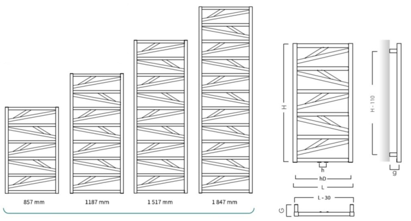 - 430 × 1187 mm, výkon 480 W, (vykurovacia tyč 300 W)