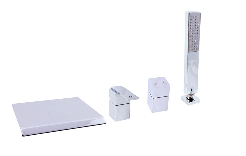 Vodovodná batéria vaňová stojanková štvorotvorová s keramickým prepínačom, samonavíjacou 2m hadicou a sprchou.