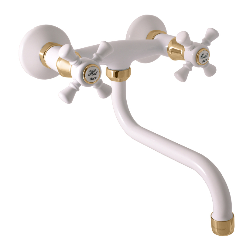 RAV SLEZÁK MORAVA Batéria drezová/umývadlová nástenná, s ramienkom-biela/zlato MK301.5/21BZ
