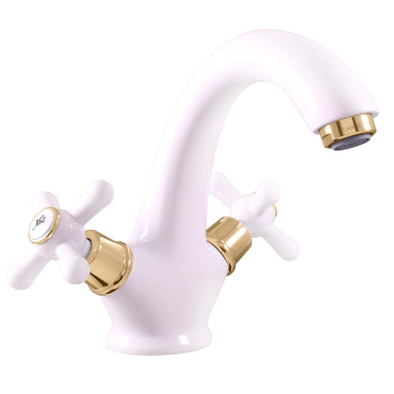 RAV SLEZÁK MORAVA Batéria umývadlová stojanková - výška 160 mm - biela/zlato MK128.0BZ