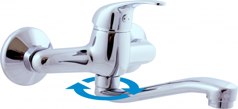 Vodovodná batéria drezová/umývadlová nástenná s plochým "S" ramienkom 195 mm.