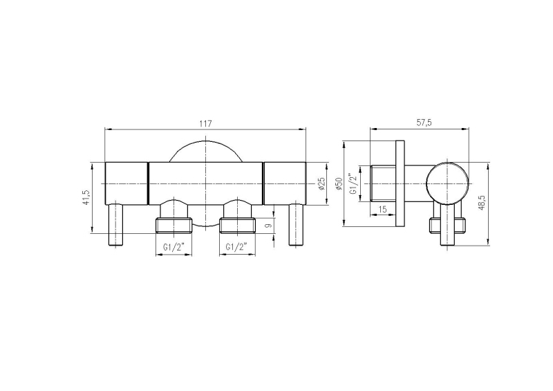 Ventil rohový dvojitý s keramickými vrškami 1/2“ x 2 x 1/2“ - chróm.