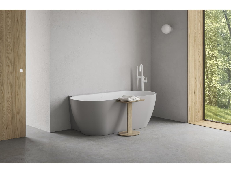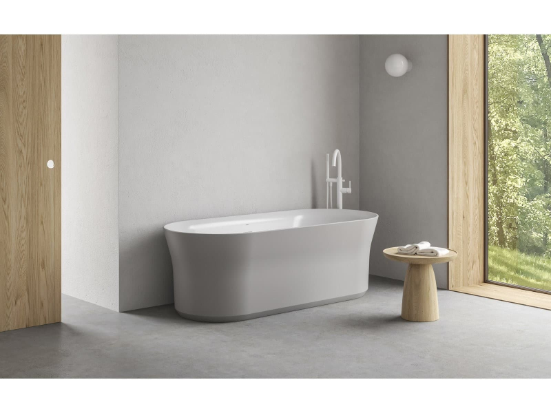 Vaňová batéria do podlahy Espirit so sprchovacím setom, určená pre R-box. V prevedení White Velvet.