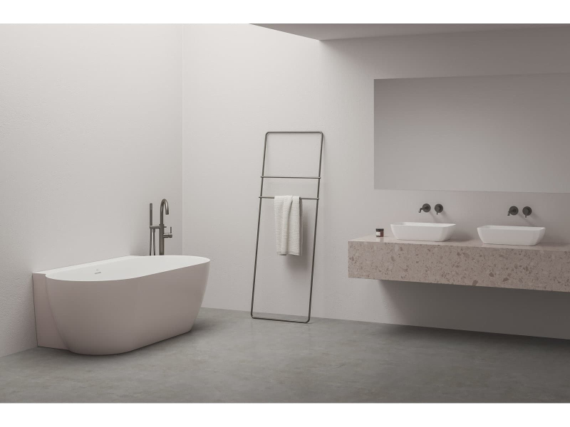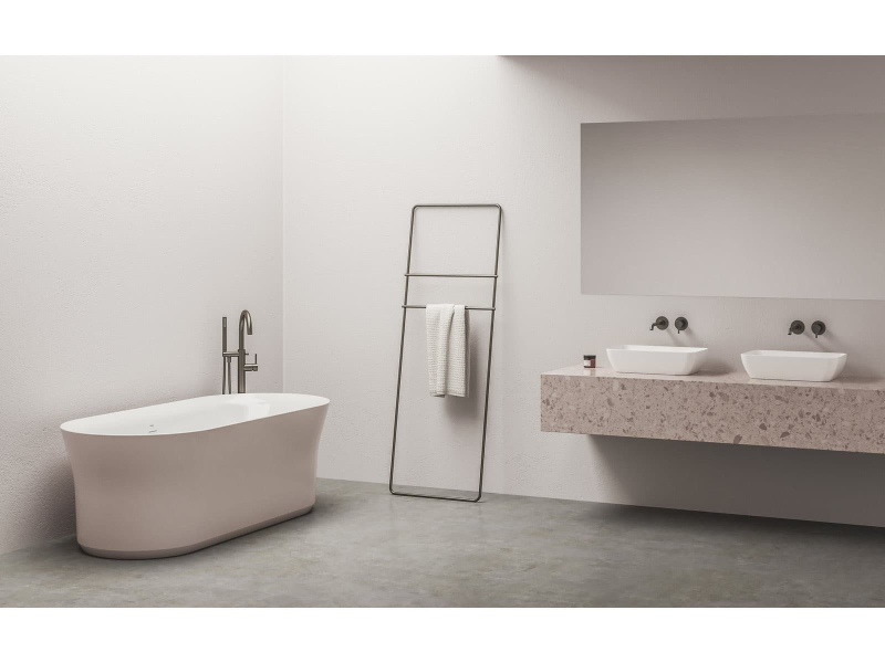 Vaňová batéria do podlahy Espirit so sprchovacím setom, určená pre R-box. V prevedení Graphite Brushed.