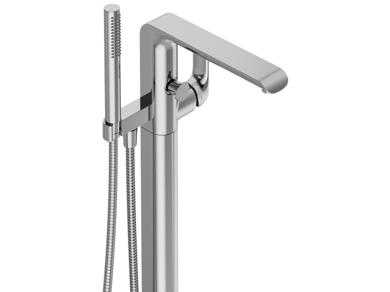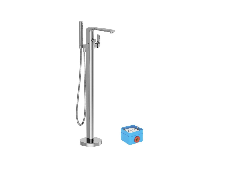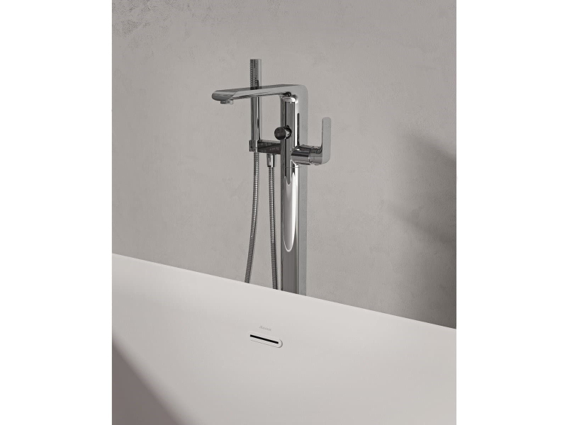 Vaňová batéria do podlahy Flat so sprchovacím setom, určená pre R-box. V chrómovom prevedení.