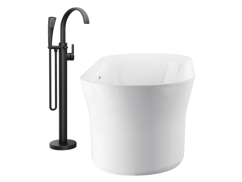 Vaňová batéria do podlahy Freedom so sprchovacím setom, určená pre R-box. V čiernom prevedení.