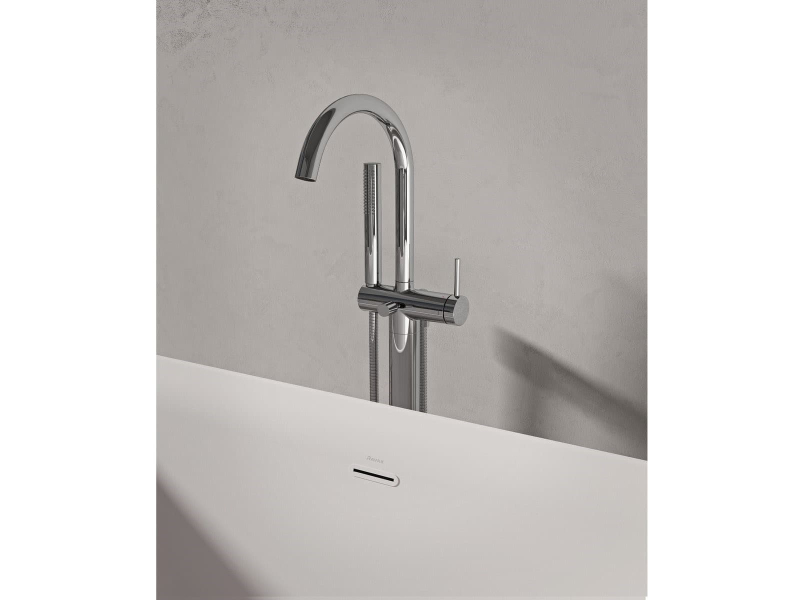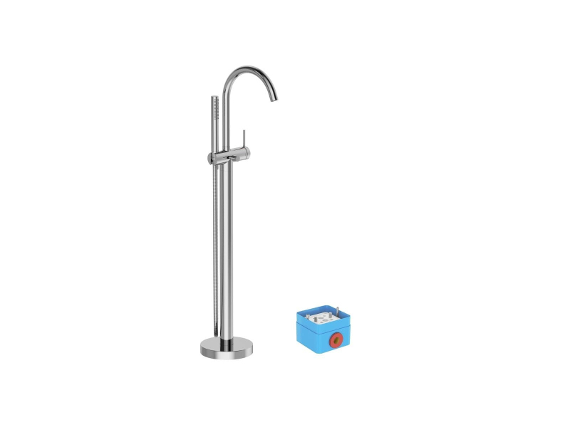 Vaňová batéria do podlahy Freedom so sprchovacím setom, určená pre R-box. V chrómovom prevedení.