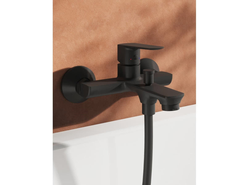 Nástenná vaňová batéria Life, bez sprchového setu. V čiernom prevedení.