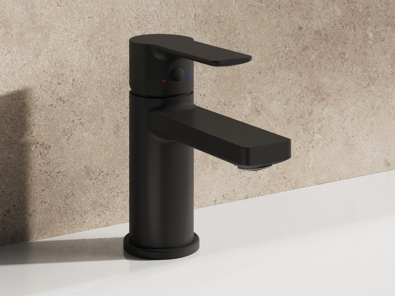 Stojanková umývadlová batéria Solar, bez výpustu. V čiernom prevedení.