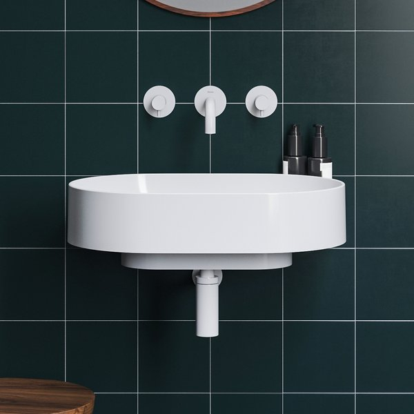 Tenkostenné keramické umývadlo Yard na inštaláciu na konzole Yard alebo na konštrukcii CS Yard, bez prepadu. Biele prevedenie. Bez otvoru - na kombináciu s umývadlovou podomietkovou batériou.