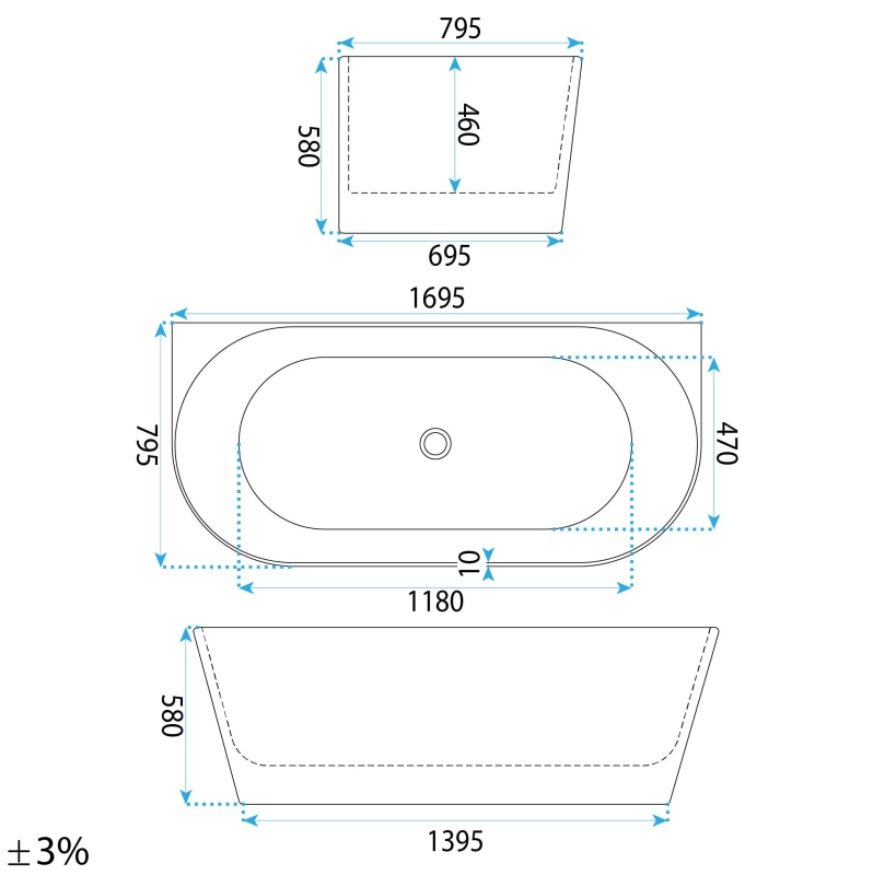 REA Akrylátová vaňa CAPRI SLIM 170cm KPL-W8331