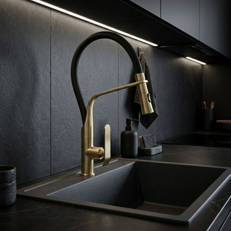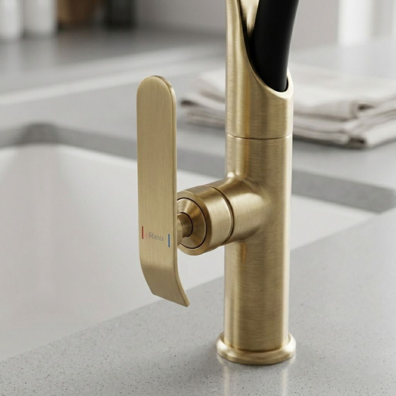 Kuchynská batéria Rea Castor v čierno-zlatom kefovanom prevedení je základom funkčnej a modernej kuchyne – spája odvážnu estetiku s vysokou praktickosťou. Pevné telo z mosadze je zárukou stability a dlhej životnosti celej konštrukcie. a zároveň uľahčuje čistenie. Flexibilný a pohyblivý výtok - batéria s výškou 485 mm a dosahom 180 mm ponúka veľkú voľnosť pri manipulácii. Flexibilná konštrukcia výtoku uľahčuje umývanie riadu neštandardných rozmerov aj presné oplachovanie každej časti drezu. Pohodlný prepínač prúdu – na konci výtoku sa nachádza prepínač, ktorý umožňuje okamžite prispôsobiť prúd vody aktuálnym potrebám, napríklad pre jemné oplachovanie zeleniny. Keramická kartuša – kvalitná keramická kartuša zaručuje dlhodobú spoľahlivosť, tesnosť. stojanková montáž - batéria sa montuje priamo na pracovnú dosku alebo drez a štandardné pripojenie 3/8 "zaisťuje plnú kompatibilitu s domácou inštaláciou. Rea Castor čierna / zlatá kartáčovaná je voľbou pre tých, ktorí hľadajú armatúru s charakterom. Kombinácia mosadznej konštrukcie, flexibilného výtoku a moderného dizajnu zjednodušuje každodennú prácu v kuchyni.