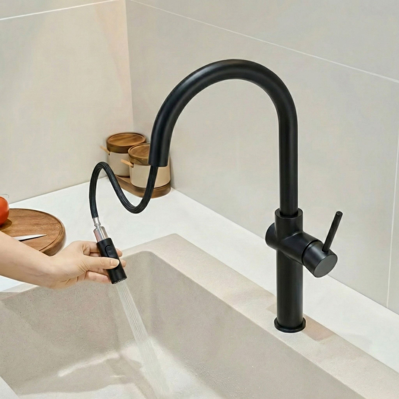 Zvýšte funkčnosť umývacej zóny s kuchynskou batériou Rea Fresh High Black. Tento model v prevedení matná čierna spája moderný minimalistický design s maximálnym komfortom používania. Pevné telo z mosadze a odolný povrch vytvorený procesom electroplatingu sú zárukou spoľahlivosti aj v náročných kuchynských podmienkach. Výsuvná koncovka výtoku - praktické riešenie na flexibilnú hadicu, ktoré uľahčuje umývanie veľkého riadu, oplachovanie zeleniny i dôkladné čistenie drezových vaničiek. podľa aktuálnej potreby (súvislý prúd alebo sprchový režim). Vysoký, otočný výtok - konštrukcia s otočením o 360 ° zaisťuje veľký pracovný dosah a voľnosť pohybu, čo oceníte pri napúšťaní vysokých hrncov. Mosadzné telo - materiál, ktorý zaisťuje stabilitu batérie a vysokú odolnosť proti korózii aj zmenám tlaku vody. Táto technológia zaisťuje dokonale hladký povrch a výnimočnú odolnosť proti oderu a mechanickému poškodeniu. Design Black Mat – štíhla línia a sýta čierna skvele kontrastujú so svetlými pracovnými doskami a hodí sa do loftových aj škandinávskych kuchýň. Kuchynská batéria Rea Fresh High Black je nástroj pre náročných. Vďaka technológii electroplating si jej čierny povrch zachováva bezchybný vzhľad po dlhé roky a zostáva elegantným aj odolným prvkom vybavenia.