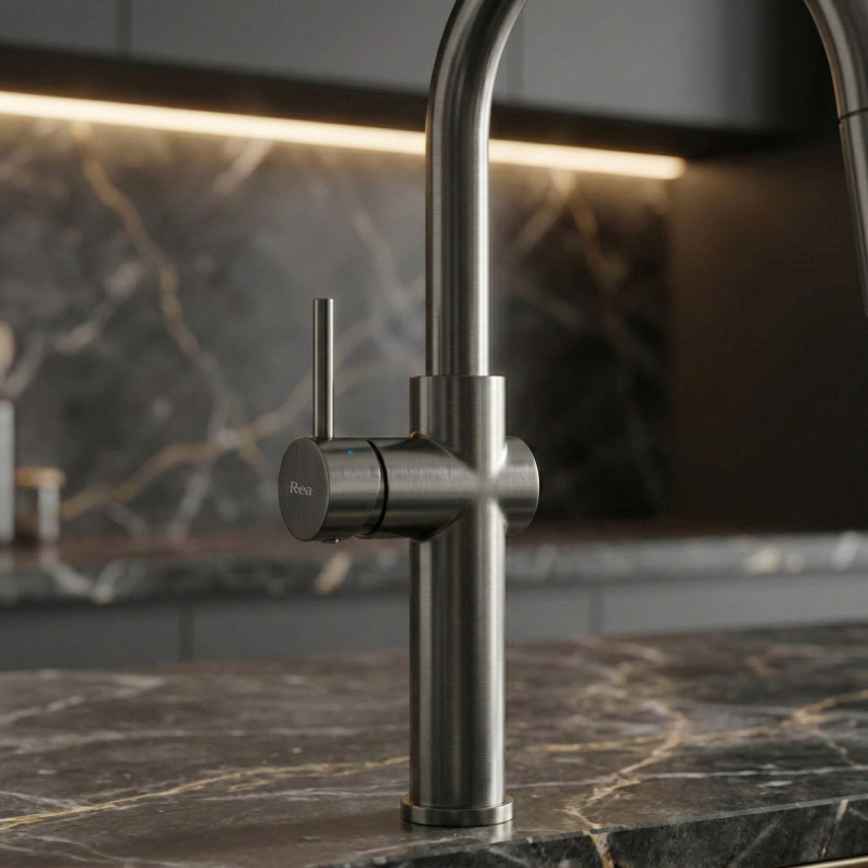 Zvýšte funkčnosť svojej zóny umývania vďaka kuchynskej batérii Rea Fresh High Titan. Tento model v titánovom prevedení spája surový moderný design s maximálnym komfortom používania. Pevné telo z mosadze a odolná povrchová úprava získaná pokročilým procesom PVD sú zárukou spoľahlivosti aj v náročných kuchynských podmienkach. Výsuvná koncovka výtoku – praktické riešenie na flexibilnú hadicu, ktoré uľahčuje umývanie veľkého riadu, oplachovanie zeleniny aj dôkladné čistenie drezových vaní. aktuálnych potrieb (klasický alebo sprchový). Vysoký otočný výtok - konštrukcia s možnosťou otočenia o 360 ° ponúka veľký dosah a voľnosť pohybu, čo oceníte pri plnení vysokých hrncov. Mosadzné telo - zaisťuje stabilitu batérie a vysokú odolnosť voči korózii aj zmenám tlaku vody. PVD povrchová úprava - titánový povrch poškriabaniu, oderu a vonkajším vplyvom. Design Titanium – jedinečný oceľovo šedý odtieň s kovovým charakterom, ktorý skvele zapadá do industriálnych, loftových a moderných kuchýň s výraznými akcentmi. Kuchynská batéria Rea Fresh High Titan je nástroj pre náročných užívateľov. Vďaka technológii PVD si jej titánová povrchová úprava zachová bezchybný technický vzhľad po dlhé roky a stane sa elegantným aj mimoriadne odolným prvkom vybavenia.