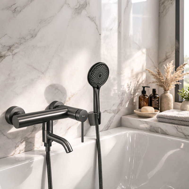 Objavte novú definíciu luxusu vo svojej kúpeľovej zóne vďaka vaňovej batérii Rea Clif v mimoriadne štýlovom prevedení Titan. Toto riešenie spája surový moderný dizajn s funkčnosťou, ktorá premení vaše každodenné rituály. Batéria je vyrobená s dôrazom na každý detail, a preto nielen priťahuje pozornosť matnou saténovou štruktúrou, ale predovšetkým zaručuje spoľahlivosť po dlhé roky používania. Inovatívna PVD povrchová úprava – zaisťuje výnimočnú odolnosť proti poškriabaniu, korózii a zmene farby a zachováva bezchybný vzhľad po mnoho rokov. udržiavanie čistoty v jej okolí. Multifunkčná sprchová hlavica – ponúka niekoľko režimov prúdu vody a umožňuje prispôsobiť intenzitu masáže vašim aktuálnym potrebám. Praktická funkcia bidetky v sprche – zvyšuje štandard hygieny v kúpeľni a robí z celej sady mimoriadne univerzálny nástroj pre každodennú starostlivosť. Masívna mosadzná konštrukcia – zaručuje dlhú životnosť a stabilitu. Vaňová batéria Rea Clif Titan je ideálnou voľbou pre užívateľov, ktorí oceňujú minimalistickú estetiku a múdra technické riešenia. Jedinečná titánová farba dodáva interiéru prestížny charakter a ergonomická rukoväť umožňuje presnú kontrolu teploty vody. Voľbou tohto modelu investujete do produktu, ktorý spája odolnosť PVD povrchovej úpravy s maximálnym komfortom pri kúpeli každý deň.