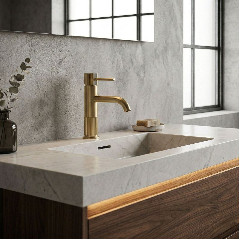 Objavte novú definíciu luxusu vo svojej kúpeľni vďaka umývadlovej batérii Rea Lungo Stripe. Táto nízka batéria je skutočným majstrovským dielom designu, ktoré spája minimalistickú formu s mimoriadne efektnými detailmi. Jej jedinečná estetika z nej robí centrálny prvok každej modernej aranžácie a dodáva interiéru prestíž aj vycibrený charakter. Dekoratívne ryhovanie – výrazná, rebrovaná textúra na tele a páke priťahuje pozornosť a dodáva batériu unikátny „šperkový“ vzhľad. vplyvomKartáčovaný povrch - elegantná matná úprava jemne rozptyľuje svetlo a veľmi ľahko sa udržuje čistá bez odtlačkov prstovPrevedenie z mosadze - materiál najvyššej kvality zaisťuje dlhú životnosť, tesnosť a spoľahlivosť celej konštrukcieDesignový tvar - štíhle línie a prepracované proporcie sa skvele hodí k moderným umývadlám umývadlám Umývadlová batéria Rea Lungo Stripe je ideálnou voľbou pre milovníkov elegantných a dizajnových štýlov, od loftu až po modernú klasiku. Vďaka inovatívnemu povlaku a precíznemu ryhovaniu si výrobok zachováva svoj lesk a perfektný vzhľad po veľmi dlhú dobu. Voľbou tohto modelu vsádzate na nekompromisnú kvalitu značky REA aj estetiku, ktorá vás bude tešiť každý deň.