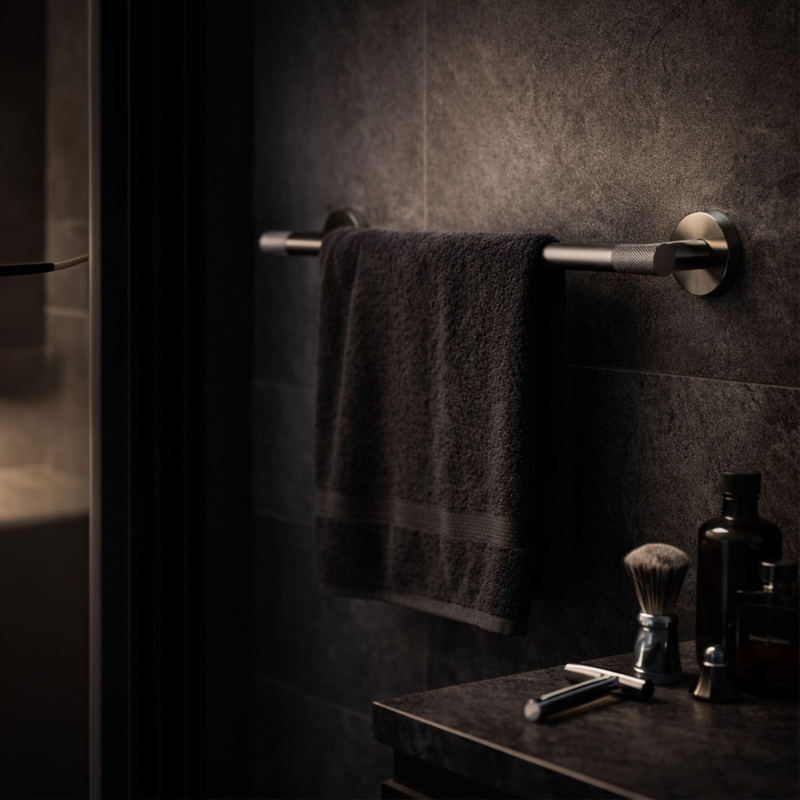 Zaistite si dokonalý poriadok a minimalistický štýl vo svojej kúpeľni vďaka vešiaku na uteráky Modern 60 cm. Jeho univerzálna povrchová úprava vo farbe titánu dokonale zapadá do moderných trendov a spája eleganciu s praktickým využitím. Vyrobený z vysoko kvalitných materiálov, zaisťuje odolnosť a plnú odolnosť proti vlhkosti, čo zaručuje spoľahlivosť na dlhé roky. Vysoko kvalitný kov – zaručuje odolnosť proti korózii a každodennému používaniu vo vlhkom kúpeľňovom prostredí. Elegantná titánová povrchová úprava – dodáva interiéru surový, luxusný charakter a dokonale ladí s modernou podomietkovou armatúrou. zavesenie a rýchle schnutie osušiek. Možnosť skrátenia rúrky – umožňuje ideálne prispôsobenie rozmeru vešiaka dostupnému priestoru vo Vašej kúpeľni. Vrúbkované zdobenie – unikátna textúra na koncoch úchytov dodáva moderný, industriálny šmrnc a odlišuje produkt od klasických riešení. zaťaženie. Vešiak na uteráky Modern 60 cm je vynikajúcou voľbou pre osoby oceňujúce harmonické spojenie estetiky a funkčnosti. Vďaka jednoduchej, a napriek tomu sofistikovanej línii sa tento produkt stáva decentnou ozdobou každej kúpeľňovej zóny. Výberom tohto riešenia získavate istotu, že Vaše uteráky budú vždy na svojom mieste, čo kúpeľni dodá triedu a moderný titánový lesk.