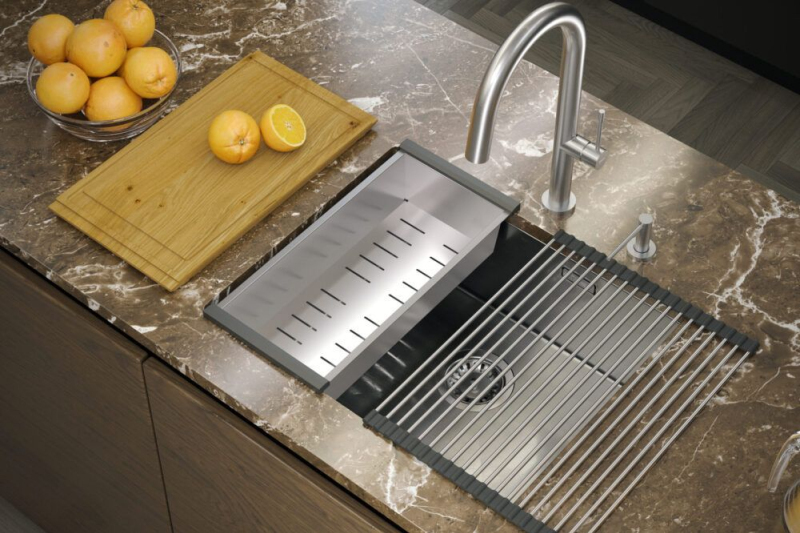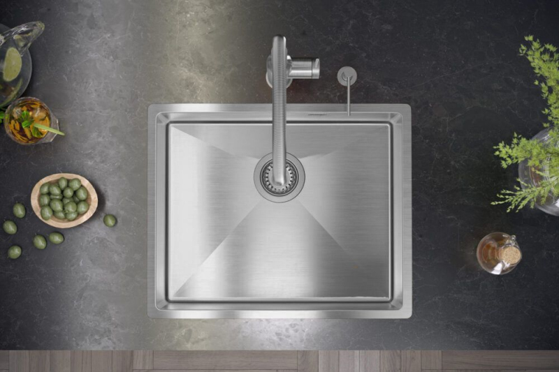 Drez z nerezovej ocele so svojim minimalistickým, moderným vzhľadom hodí do aranžmánu každej kuchyne. Hlboká a priestranná komora zaisťuje vysoký komfort používania. Výrobok má odtok, ktorý zodpovedá odtieňu, takže celok pôsobí veľmi súdržne a elegantne. Sifón, ktorý je súčasťou drezu, je praktický model, ktorý šetrí miesto. Vďaka usporiadaniu odtokových rúrok môžete v skrinke pod drezom získať ďalší priestor na uloženie obalov od pracích prostriedkov alebo nádob na odpad. Hygienický materiál a ľahké čistenie hladkých povrchov dodávajú drezu čistý vzhľad a zabraňujú rastu mikroorganizmov.