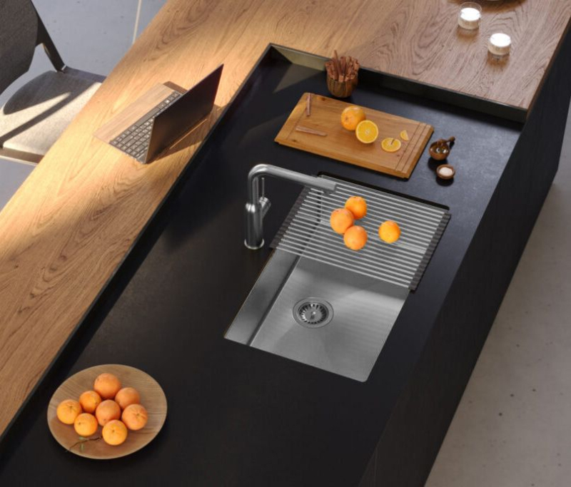Drez z nerezovej ocele so svojim minimalistickým, moderným vzhľadom hodí do aranžmánu každej kuchyne. Hlboká a priestranná komora zaisťuje vysoký komfort používania. Výrobok má odtok, ktorý zodpovedá odtieňu, takže celok pôsobí veľmi súdržne a elegantne. Sifón, ktorý je súčasťou drezu, je praktický model, ktorý šetrí miesto. Vďaka usporiadaniu odtokových rúrok môžete v skrinke pod drezom získať ďalší priestor na uloženie obalov od pracích prostriedkov alebo nádob na odpad. Hygienický materiál a ľahké čistenie hladkých povrchov dodávajú drezu čistý vzhľad a zabraňujú rastu mikroorganizmov.