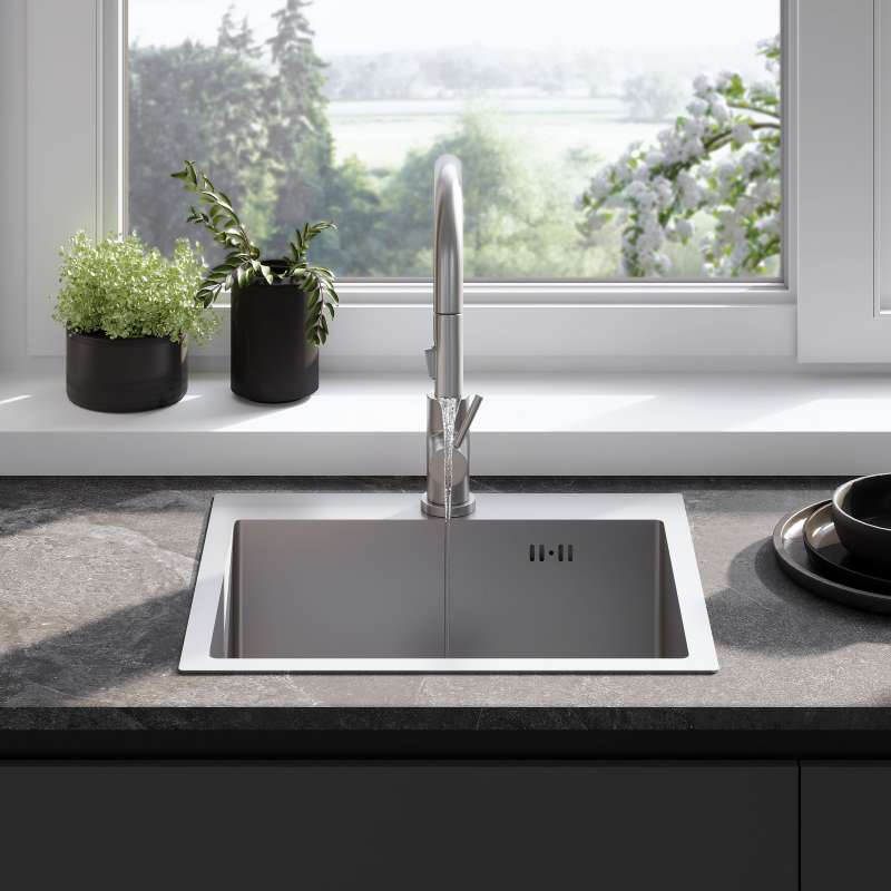 REA Oceľový drez Leo 50 BRUSH NICKEL KPL-96003