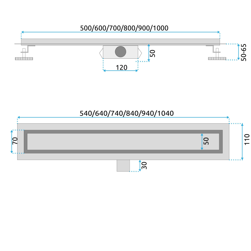 Odtokový žľab z vysoko kvalitnej nerezovej ocele AISI 304 je jedným z našich najlepších sprchových žľabov. Vďaka špeciálnemu výrobnému procesu sa ľahko udržuje v čistote. Žľab je k dispozícii v niekoľkých veľkostiach, aby dokonale ladil so sprchovacím kútom alebo sprchovými dverami, ktoré nájdete v našej ponuke.