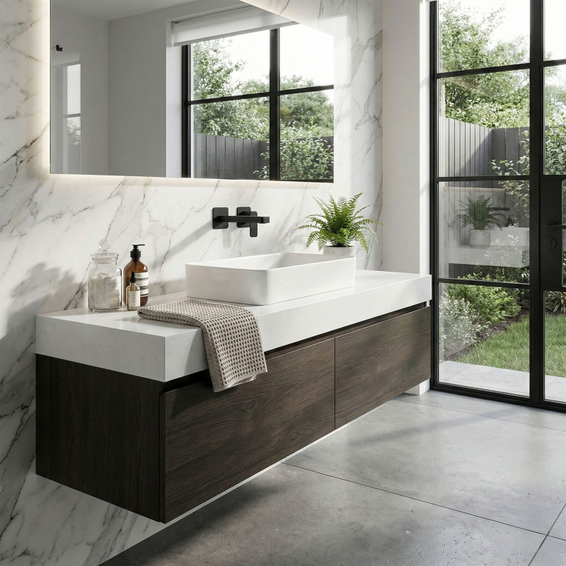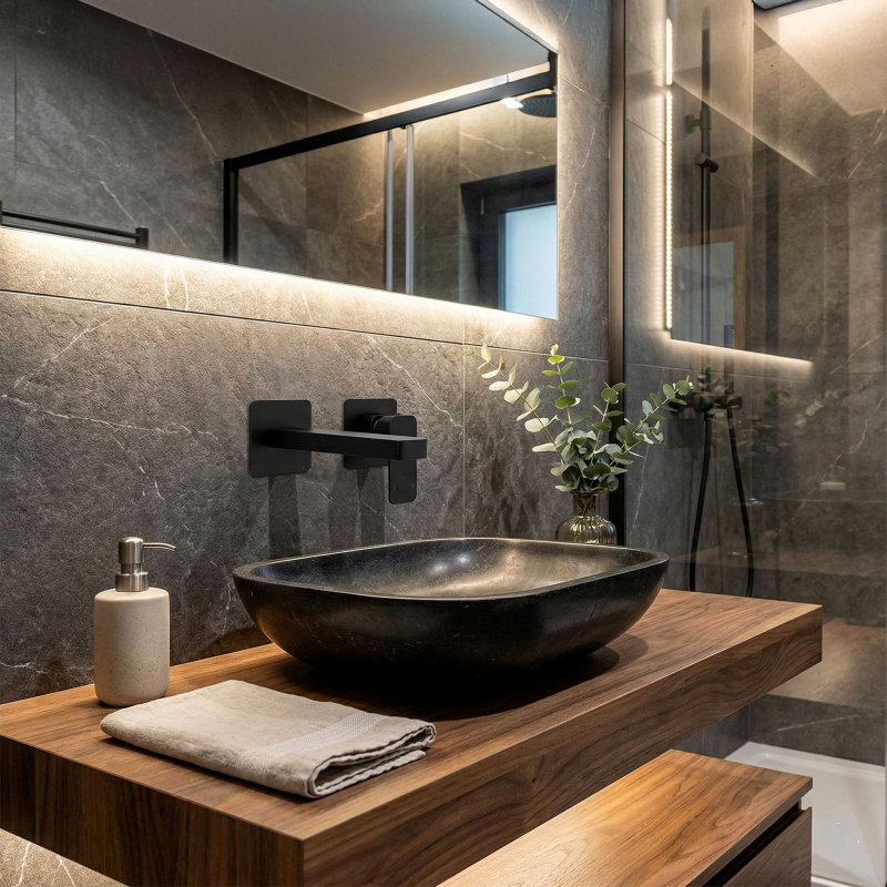 Premeňte svoj interiér a stavte na vycibrený štýl výberom podomietkovej umývadlovej batérie Rea Arlo v módnom prevedení matná čierna. Tento model je kvintesenciou moderného minimalizmu, ktorý sa skvele hodí do loftových a modernistických aranžmánov. Podomietková montáž – úspora miesta a estetický, skrytý inštalačný systém. Technológia Electroplating – metóda nanášania farby zaručuje hladký, matný povrch odolný voči poškodeniu. Vysoko kvalitný mosadz - záruka pevnosti a dlhej životnosti tela batérie.Keramická kartuša - plynulá regulácia prúdu vody a spoľahlivý chod mechanizmu po dlhé roky.Perlátor - nižšia spotreba vody a mäkký prúd, ktorý nestrieka. Batéria Rea Arlo je návrhom pre tých, ktorí oceňujú dobrý dizajn. Jej minimalistická forma uľahčuje udržanie umývadlovej zóny v dokonalej čistote a precízne spracovanie zaisťuje bezporuchovú prevádzku. Voľbou tohto modelu získate istotu, že vaša kúpeľňa získa exkluzívny charakter a každodenné používanie sa stane čistým potešením.