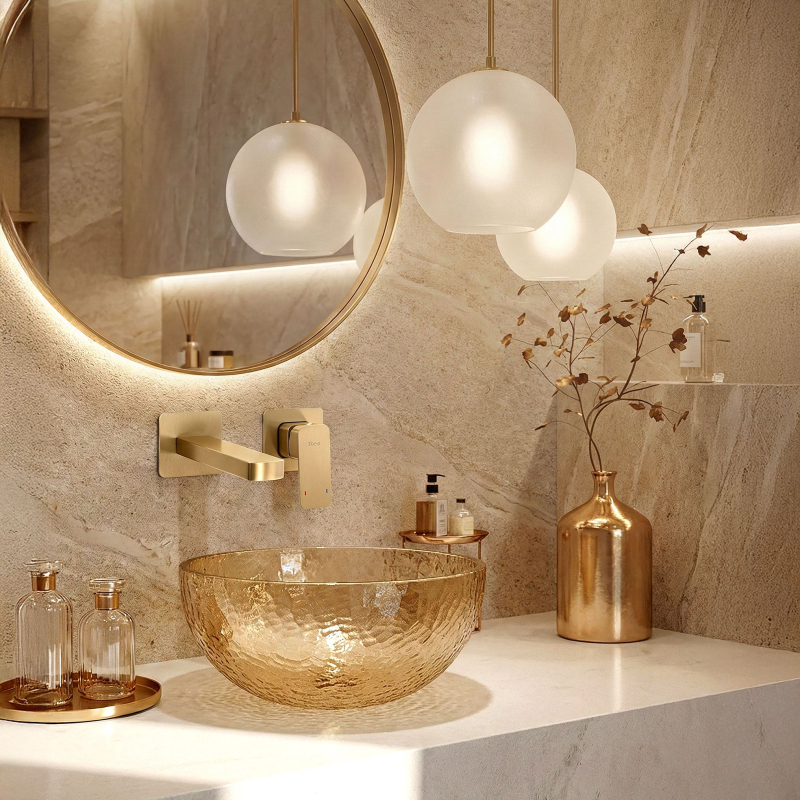 Zvoľte minimalistickú eleganciu s podomietkovou umývadlovou batériou Rea Arlo. Tento model je kvintesenciou moderného designu, ktorý spája strohú geometriu s teplým odtieňom kartáčovaného zlata. Je určený pre nástennú montáž, vďaka čomu zachováte čistotu tvarov a ušetríte miesto v umývadlovej zóne. Geometrická forma - batéria sa vyznačuje priamymi líniami a štvorcovými rozetami. Plochá výtoková hubica a ergonomická páka tvoria ucelený, architektonický celok, ideálny do moderných interiérov. Povrch Kartáčované zlato – povrch batérie prešiel procesom kefovania, vďaka čomu získal ušľachtilý matný zlatý odtieň. Táto štruktúra je nielen efektná, ale aj praktická – lepšie maskuje odtlačky prstov a stopy vody ako lesklé povlaky. Poddomietkový systém – montáž do steny umožňuje skryť inštalačné prvky a ponechať viditeľné iba dekoratívne časti armatúry. Toto riešenie uľahčuje udržiavanie čistoty okolo umývadla a dodáva kúpeľni exkluzívny vzhľad. Mosadzná konštrukcia – telo batérie z vysoko kvalitnej mosadze zaručuje odolnosť a ochranu proti korózii. Vnútri je použitá spoľahlivá keramická kartuša, ktorá zaisťuje plynulú reguláciu prúdu. Ekológia a komfort - výtok je zakončený perlátorom, ktorý prevzdušňuje prúd vody. Vďaka tomu je prúd mäkký, nerozstrekuje sa a umožňuje znížiť spotrebu vody. Batéria Rea Arlo Kartáčované zlato je skvelou voľbou pre milovníkov štýlu modern glamour a loft. Jej matné zlaté prevedenie a geometrické tvary tvoria vycibrený detail, ktorý zatepľuje surové kúpeľňové interiéry.