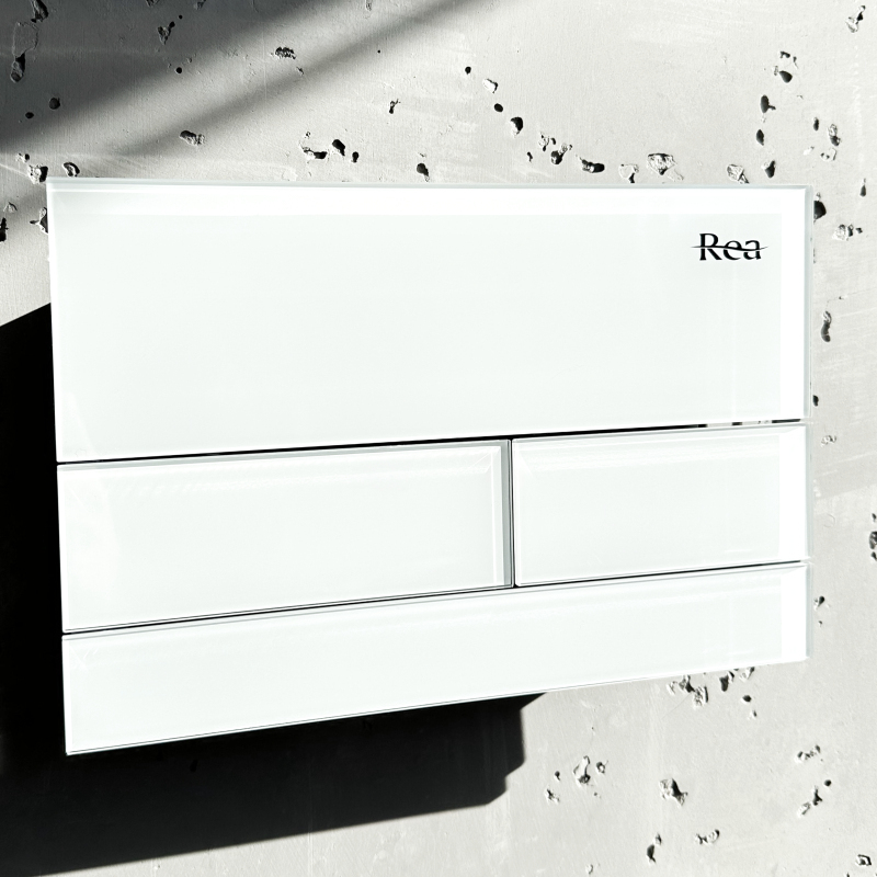 REA Podomietkový WC systém + tlačidlá T White Glass KPL-E0052