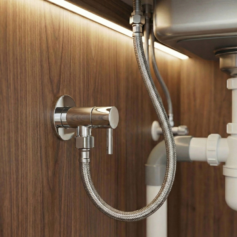 Pripojovací rohový ventil 1/2 × 3/8 palca je absolútny štandard a nevyhnutný prvok vodoinštalácie v každej kúpeľni aj kuchyni. Premyslená konštrukcia s praktickou pákou zaručuje spoľahlivosť a univerzálny rozmer umožňuje pripojenie väčšiny domácej armatúry. Určenie (výstup 3/8 palca) – najrozšírenejšia veľkosť na trhu, určená pre tenké, flexibilné opletené hadičky. Slúži k bezpečnému pripojeniu umývadlových, drezových a bidetových batérií, rovnako ako k napájaniu splachovacích nádržiek pri WC kompletoch a podomietkových systémoch. zatváranie a otváranie vody prebieha otočením o 90°, čo umožňuje rýchle uzatvorenie v prípade havárie. Pohodlná páka – namiesto klasického kolieska je ventil vybavený ergonomickou pákou, ktorá umožňuje ľahké uzatvorenie vody aj mokrými rukami alebo v ťažko dostupných miestach, napr. nerezovej ocele, odolné proti korózii a mechanickému poškodeniu pri montáži. Vysoký pracovný tlak – ventil je prispôsobený pre prevádzkový tlak až 1 MPa (10 bar), čo zaisťuje plnú bezpečnosť v štandardných inštaláciách. Pripojovací ventil 3/8 palca s pákou je istou a praktickou voľbou pri montáži batérií a toaliet. Keramická hlavica a systém rýchleho zatvárania zaručujú bezpečné a bezproblémové zásobovanie vodou.